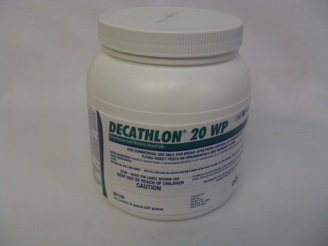 Decathlon 20 WP is effective for broad spectrum control of crawling and flying insect pests on ornamental and nursery stock. Decathlon 20 WP will not stain or cause damage to any painted or varnished household surface, plastic, fabric or other surface where water applied alone causes no damage.