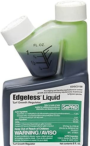 Edgeless concentrate integrates patented synergy of two turf growth regulators to control growth and reduce string trimming requirements of warm- and cool-season turfgrasses. Applied as a 6-inch banded application wherever repeated string trimming or edging of turfgrass is required. Proper application can result in up to 8 weeks of growth control greatly reducing the need for string trimming. Provides improved profitability by reducing labor and fuel costs. Application Timing. For best results: Apply Edgeless to actively grow turfgrass. Apply Edgeless after the resumption of active growth in the spring. Make final application of the season a minimum of 4 weeks before the onset of inactive growth or winter dormancy. Prior to Application. For best results: Turf should be trimmed. Turf should be actively growing and healthy. Note: Edgeless application should be avoided on turfgrass under stress due to temperature and moisture extremes. After Application. For best results: Allow Edgeless to dry on the leaf surface after application. Once dry, irrigate with at least 0.25” to move Edgeless into the root zone. A light clean-up trimming may be necessary for vigorously growing turfgrass up to 1 week after application of Edgeless. Note: String trimming beyond 1 week after application might result in a loss of growth regulation. What to Expect: Growth regulation should be evident in 4 to 7 days and may last as long as 8 weeks. During this period of growth regulation, string trimming will be greatly reduced or eliminated. If necessary, repeat applications can be made at 8 to 12-week intervals.