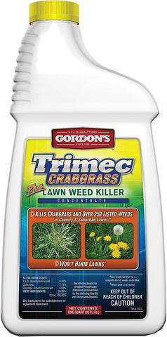 Gordon's Trimec Crabgrass Plus Lawn Weed Killer Concentrate offers broadleaf weed control for over 200 or more common broadleaf weeds. This crabgrass killer controls emerged grassy weeds, such as crabgrass, foxtail and signal grass, as well as broadleaf weeds, such as dandelions and plantain. The weed killer concentrate is designed as a 3-way herbicide blend that makes managing pesky weeds in your lawn, pathway or backyard a breeze.