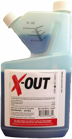 X-Out is a post emergent, non-selective, herbicide that mixes readily with water to be applied as a spray for the control of broadleaf weeds and grasses. A group 10 herbicide (glutamine synthetase inhibitor), X-Out is a foliar-active material with little or no soil-residual activity. Visual results showing necrosis of leaves and young shoots occur within 2 to 4 days after application under good growing conditions. X-Out is rainfast four (4) hours after application to most weed species; therefore, rainfall within four (4) hours may necessitate retreatment or may result in reduced weed control.