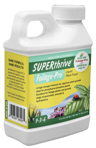 Foliage-Pro® 9-3-6 is a complete nutrition formula that has all 6 essential macronutrients and all 10 essential micronutrients required by plants for optimum growth in any medium. The N-P-K (3-1-2) ratio is recommended by the National Rose Society, the University of Florida and a number of other plant specialists and organizations. This N-P-K ratio is the ideal ratio for most plants including, but not limited to; roses, tropicals, legumes, and cannabis. Foliage-Pro is complete and balanced and, like all our complete formulae, the minerals are in solution and immediately available to the plant.