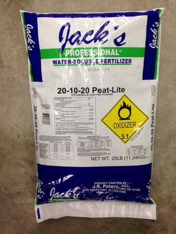 Jack's Professional 20-10-20 Peat-Lite 25Lb Water Soluble Fertilizer for continuous liquid feed programs.