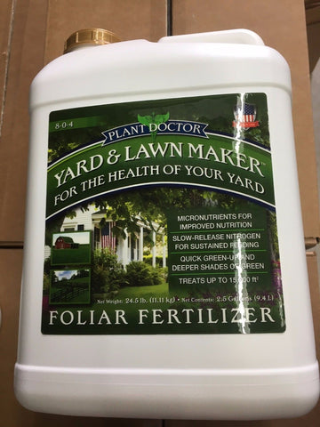 Yard & Lawn Maker™ 8-0-4 foliar fertilizer utilizes slow-release nitrogen for sustained feeding and quick green-up. It also contains an additional 1.0% iron for deeper shades of green.